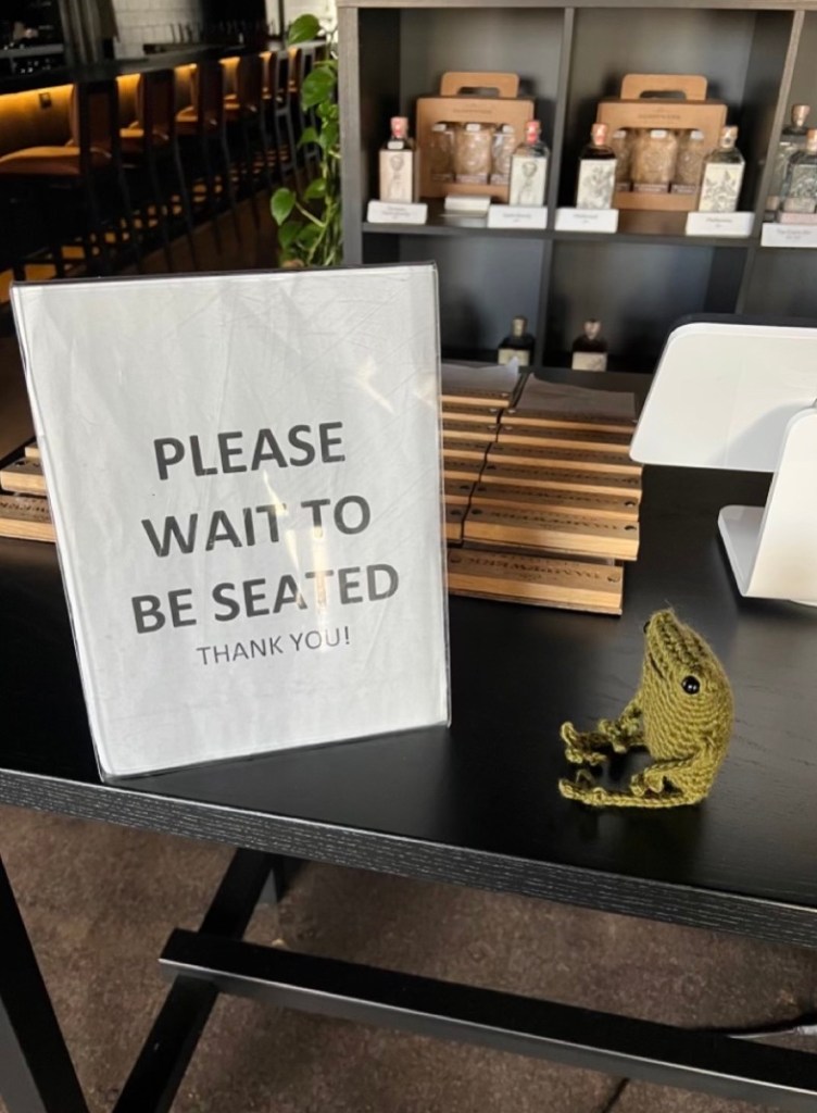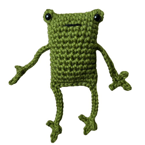 This little frog has become a symbol of spreading joy, building community, and showing gratitude for others in my life. For me, he represents quirky and creative sides of myself that I used to hide from others. He is a part of my own healing as I use a craft passed down from generations before me in my family to expand what I know as family now. I have always found joy and escape in personifying non-human beings and every day objects, and this guy is certainly a creation of that coping. Since I have started sharing him with friends, family and strangers, he has brought me and many others a certain playfulness that is often missing in our everyday lives.